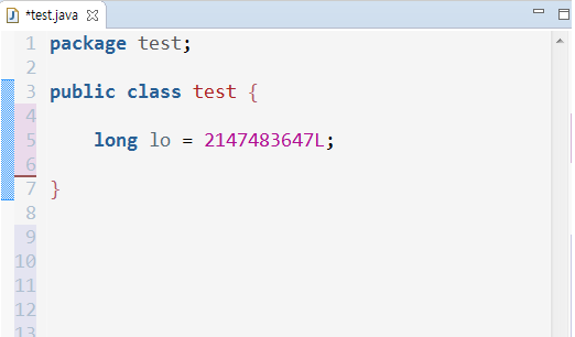 이것을 해결하려면 아래와 같이 리터럴 끝에 소문자나 대문자 L 을 붙여주면된다.