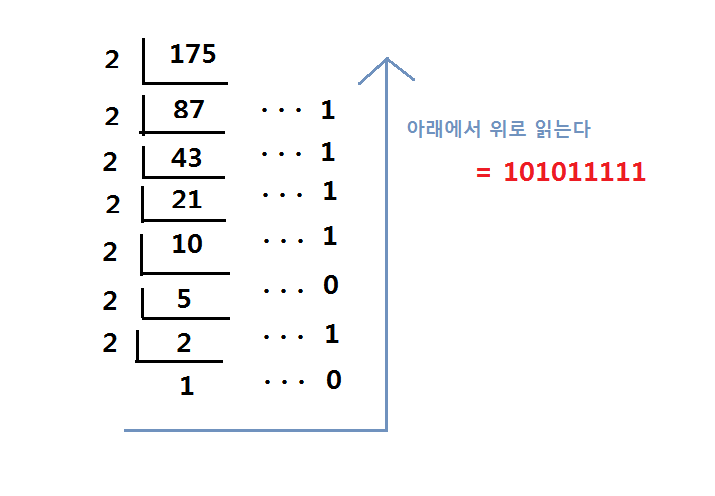 10진수로 175 라는 숫자를 각 진수별로 변환해보겠다.