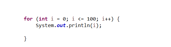 = 0부터 100까지 담을 int 타입의 변수를 지정하고. System.out.println(변수); 를 반복해야 할 것이다.