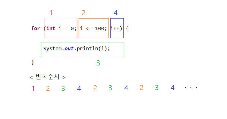 1 : 반복시킬 변수 i 를 int타입으로 선언하고 초기값을 0 으로 초기화