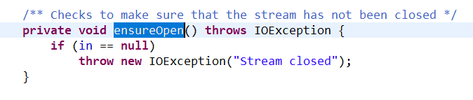 in == null 이면 IOException 을 던지는 구조이다.